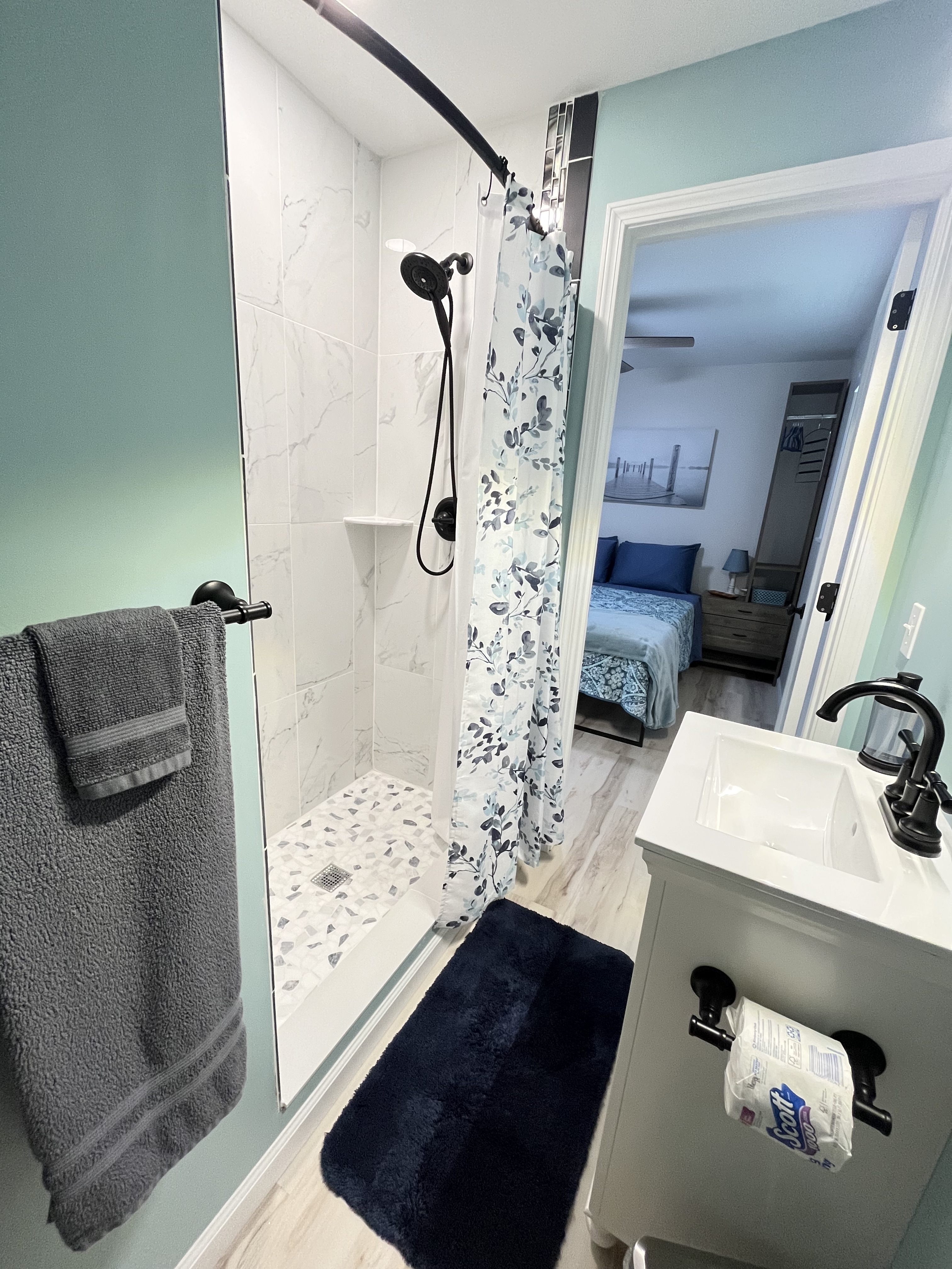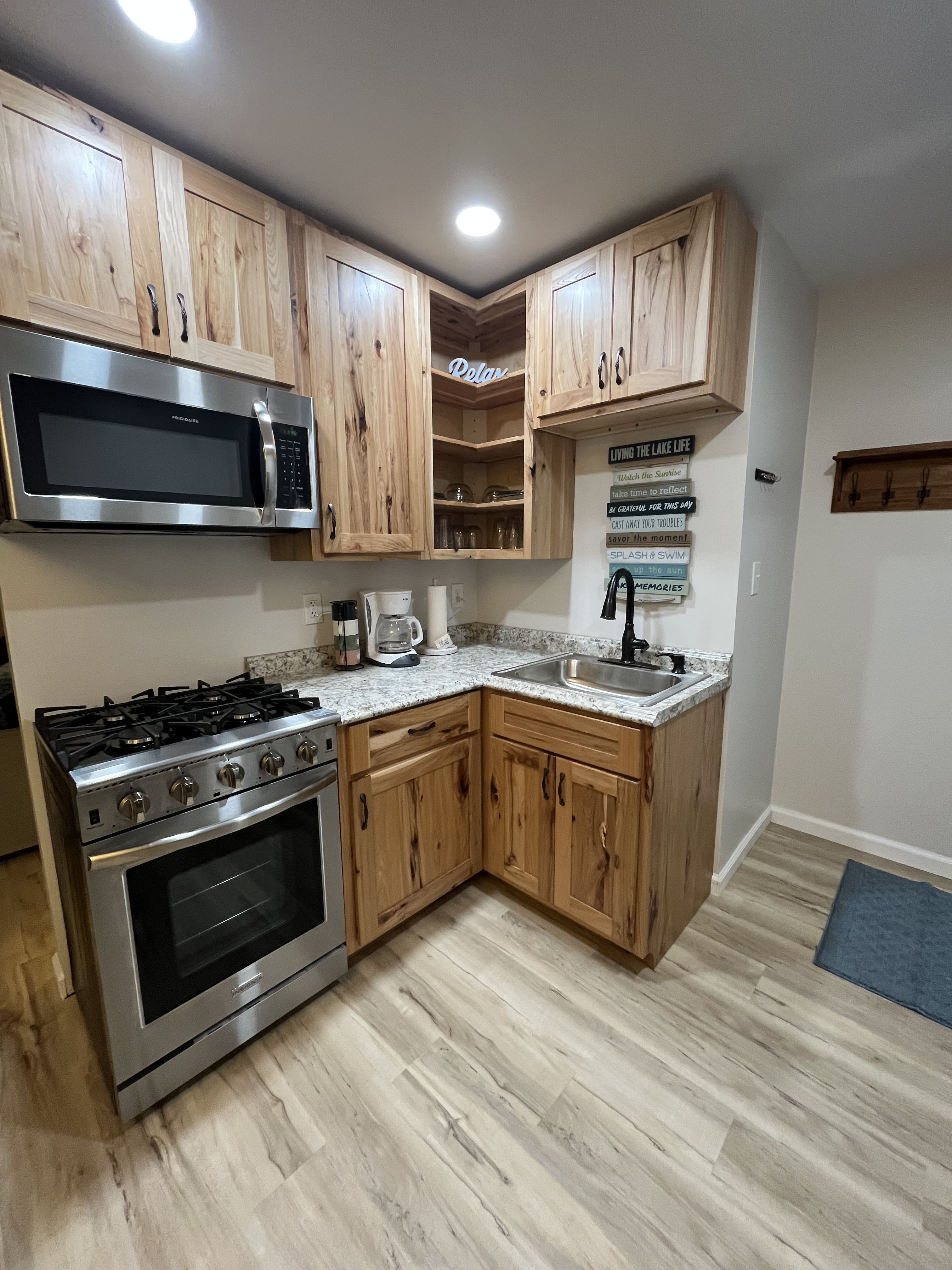 Experience the ultimate retreat in tis stunning suite, perfectly positioned to explore the tranquil shores of Lake Huron and the AuSable River. This stylish first-floor suite features one bedroom with a queen size bed, bathroom, and full kitchen.